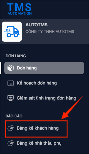 Từ thanh menu bên trái, trong mục Báo cáo, nhấn chọn Bảng kê khách hàng.
