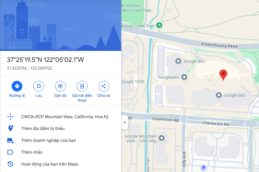 Nhấp vào liên kết Xem địa chỉ chi tiết để chuyển đổi tọa độ thành địa chỉ văn bản dễ đọc hơn.