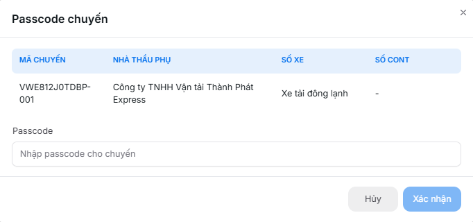 - Tìm đến chuyến hàng mà bạn cần gửi passcode (mã xác nhận).