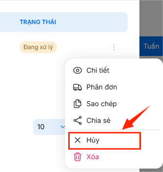 - Huỷ/Đóng bỏ đơn hàng tuỳ theo tình trạng