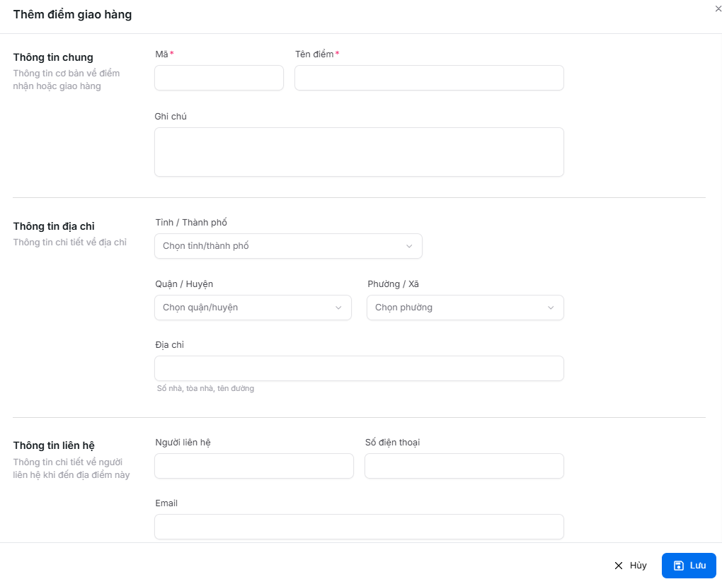 Nhấn nút Thêm điểm giao hàng để mở form tương tự.