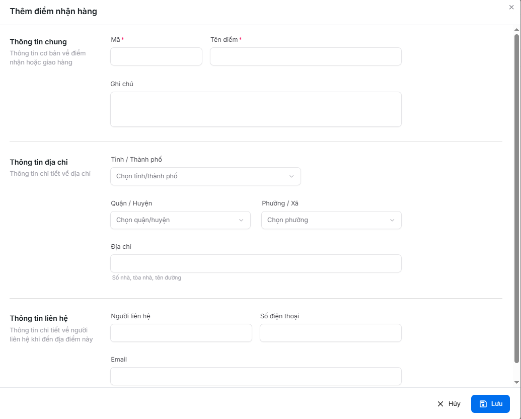 Nhấn nút Thêm điểm nhận hàng để mở form điền thông tin.
