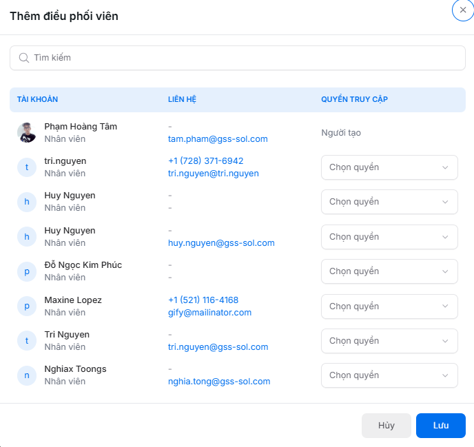 Xác nhận hoặc chỉnh sửa thông tin người điều phối đơn hàng (nếu được phép).