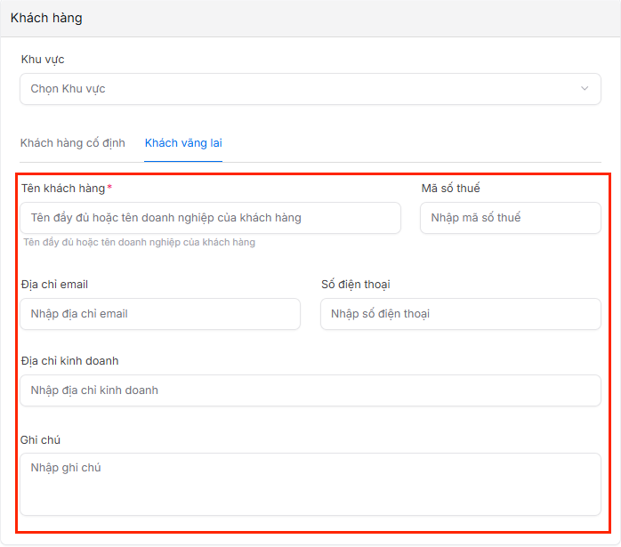 Khách vãng lai: Nhập trực tiếp thông tin khách hàng mới.
