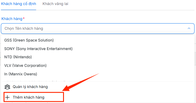 Khách hàng cố định: Chọn tên khách hàng từ danh sách có sẵn.