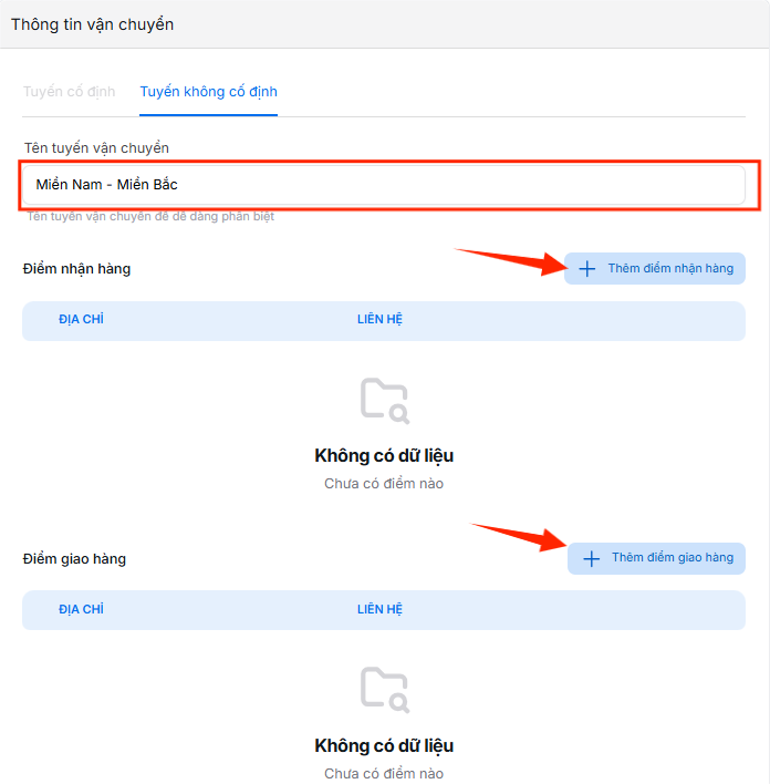 Nhập tên tuyến vận chuyển để dễ phân biệt.