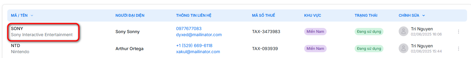 - Chọn khách hàng bạn muốn xem, sau đó nhấp vào mã khách hàng hoặc tên khách hàng để vào màn hình chi tiết.