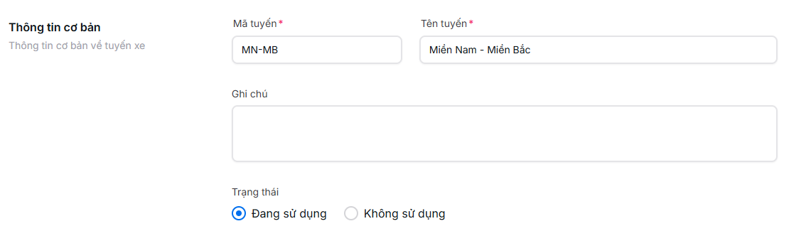 - Sau khi hoàn tất thông tin tuyến đường và các điểm nhận/giao, nhấn Lưu để ghi nhận.
