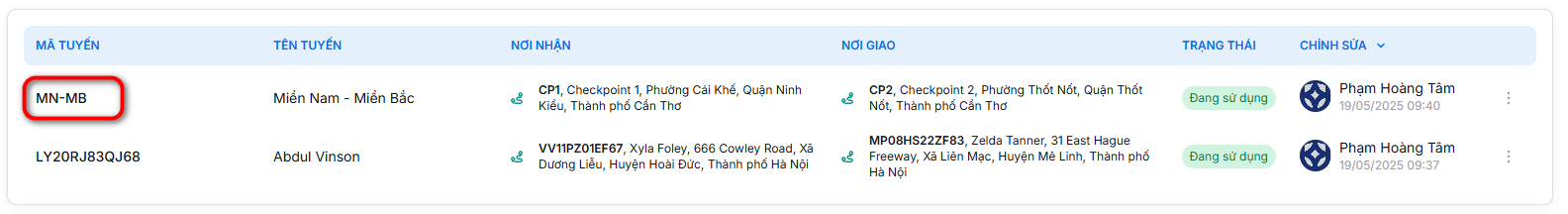 - Hoặc nhấp vào tên tuyến để di chuyển đến màn hình chi tiết tuyến → Nhấn nút Chỉnh sửa ở góc trên cùng bên phải.