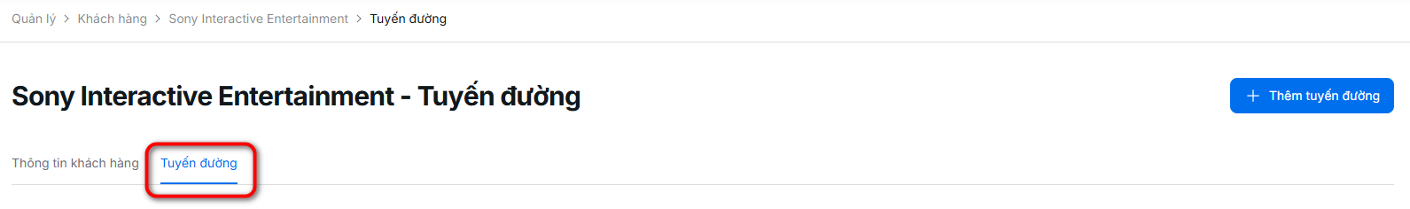 - Trong giao diện chi tiết khách hàng, chọn tab Tuyến đường ở phía trên để xem danh sách các tuyến của khách hàng đó.